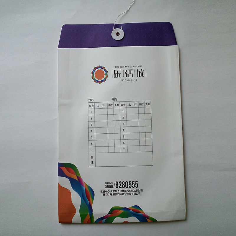 檔案袋 :原材料可采用各種拉力適當的紙張進行生產,規格大小根據實際情況進行確定,起作用主要是容納品。 主要產品有 資料袋 、檔案袋、圖紙袋、 存放服裝袋 、信封及特殏需求 等等。