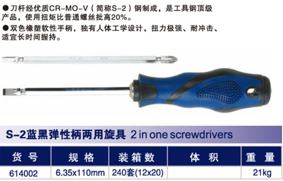 藍黑色彈性柄兩用旋具,兩用螺絲刀,磁鐵螺絲刀,2頭螺絲刀