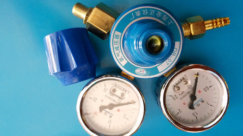 7、順時針方向旋轉減壓器調節螺桿,使低壓表達到所需的工作壓力。如果太高的話應旋松調節螺桿,放出一部分氣后重新調節。