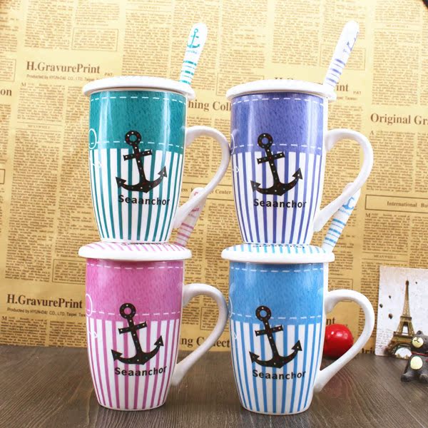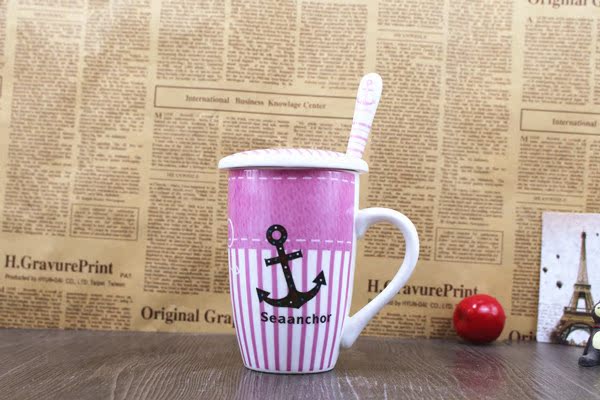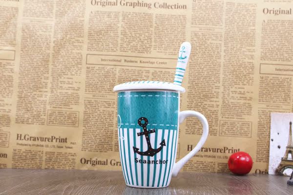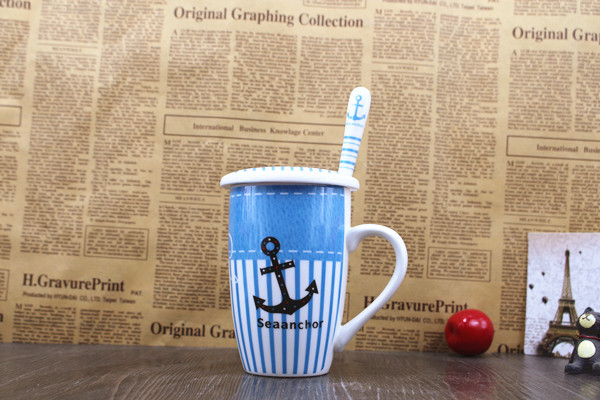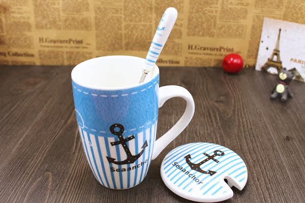 大嘴猴 帶蓋陶瓷杯子 正品大容量暢飲杯 馬克陶瓷杯 大容量早餐杯10.90