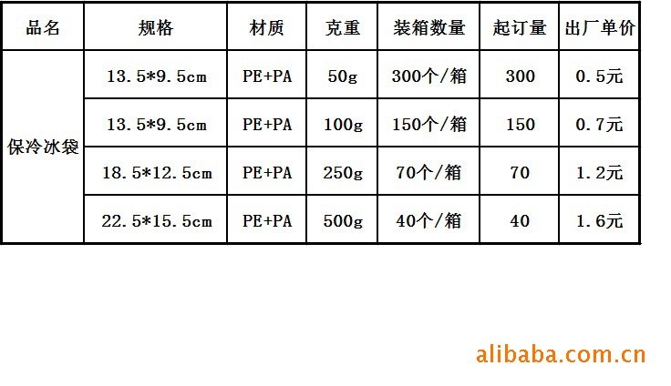 6、蛋糕、月餅冰袋:現市面有很多冰淇淋蛋糕、冰皮月餅,可將該冰袋與蛋糕、月餅放在一起,使蛋糕、月餅不會因為溫度升高而變質。(使用方法:把該冰袋放入冰箱中的冷凍室內,直到冰袋凍結成固體后,再把冰袋與蛋糕、冰皮月餅放在在一起即可。)