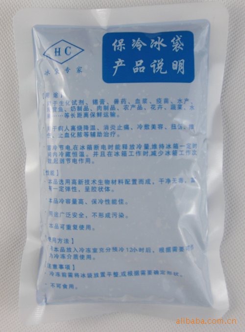1:冰袋采用高新技術生物材料制作,干凈無毒,富有一定彈性,呈膠狀體;