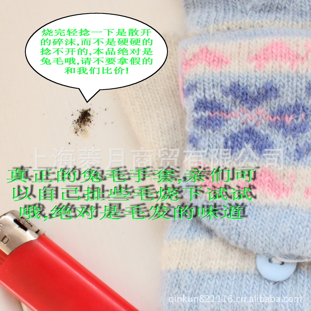 無論是實體店還是網店這種手套的價格都不便宜的呢!批回去可以買上價的哦!真正的兔羊毛混紡的喲,不是仿的化纖料哦,毛毛扯下來燒了都是毛發的味道滴,手輕輕一捻都散開的,沒有硬硬的結塊哦,質量很好,打電腦超好用,非常實用的翻蓋,非常經典的款哦,來吧新貨剛到現在特價批哦!有量大(600副以上)的客戶價格上可以適當的優惠哦!小量批發的沒有哦,因為都是薄利的啦,量小優惠不起來!