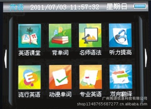 電子辭典擴展功能: 支持屏幕手寫 支持擴展存儲卡 真人發音 支持播放MP3音頻 支持播放MP4視頻 攝像頭 支持電子書閱讀