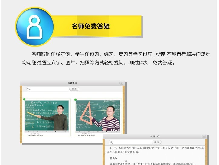 名師隨時在線守候,學生有疑難可隨時通過文字、圖片、拍照等方式輕松提問,即時解決,免費答疑。