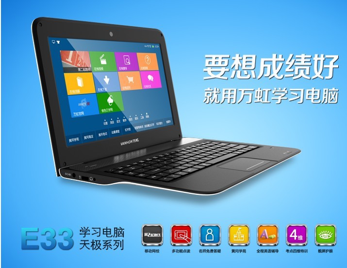 萬虹E33采用國際流行時尚超薄外觀設計,超高配置,13.3寸超大護眼屏,行業真正次實現家長、學生使用二合一。一臺萬虹E33等于一臺的筆記本電腦 一臺功能強大的學習電腦,真正物超所值,性價比!