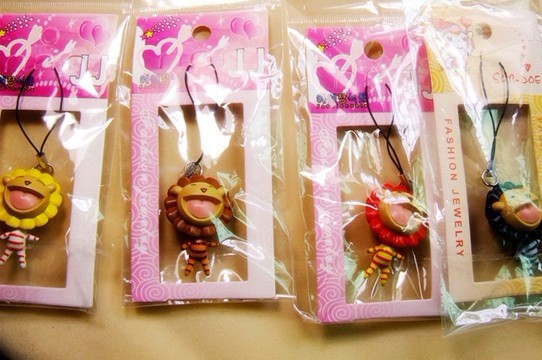 C32批發卡通傻笑獅子卡通手機掛件飾品(獨立包裝)