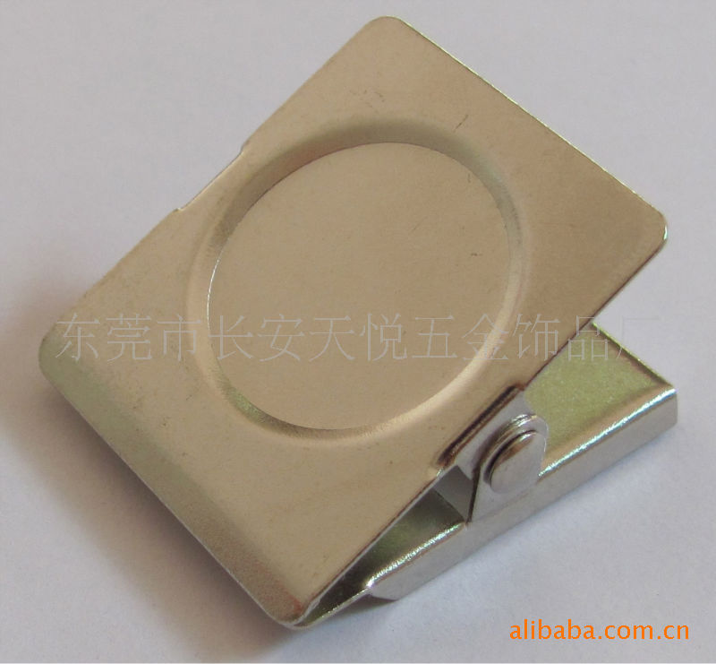 該為夾子類產品。材質可分為鐵、不銹鋼、銅片材以及合金等。片材采用沖壓工藝成型,表面可壓制或蝕刻各種LOGO圖案,也可印刷各式彩色LOGO。合金材質的則采用鑄造成型,產品上面同樣可以直接鑄出LOGO,也可以采用雕刻或印刷等工藝制作。表面可電鍍成各種顏色?,F有多種款式的夾子可供客人挑選,同時也可以按照客人的圖紙或樣板進行開模生產。由于鐵材質電鍍較容易變色和生銹,夾子材質可改為銅或不銹鋼。使用時盡量避免直接與酸、堿液接觸,以增長使用時間。歡迎各位新老客戶垂詢定購。
