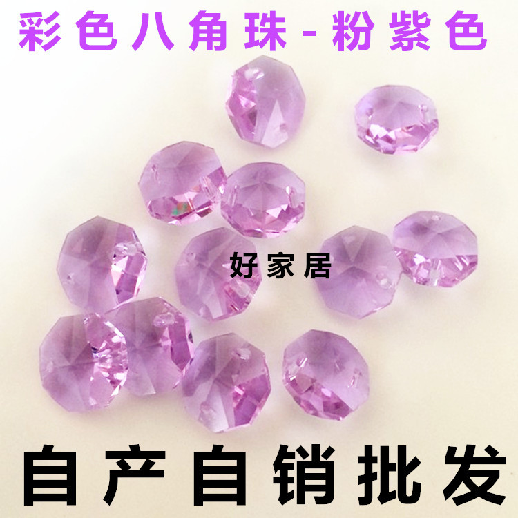 彩色八角珠 水晶紫八角珠14mm diy飾品配件材料 燈飾珠簾散珠批發