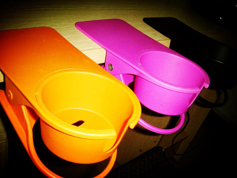 如果你的工作臺實在太小,連放杯水都比較困難,或者你經常需要畫圖紙,恨不得把桌面上的東西都掃到地上才能把紙鋪開,那么,這個大夾子可就能派上用場了。這個飲料架可以輕松固定在桌子一側,可以適應一定范圍內的不同直徑的水杯