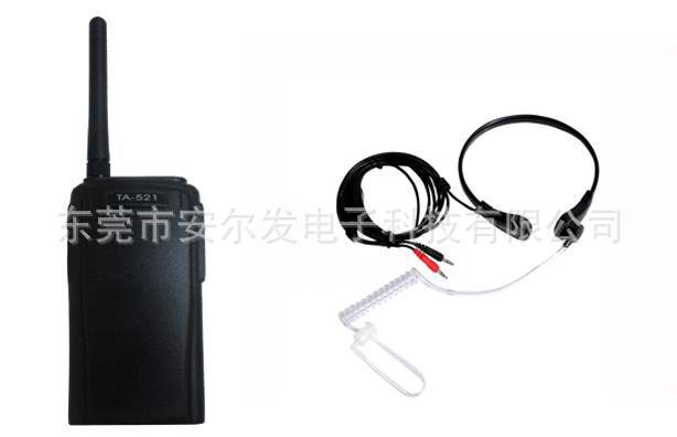 TA-521由一臺主機和三臺分機組成,每臺機均配備一個耳機和一個充電器。在主機開機的前提下,可實現任意主機與子機、子機和子機之間的互相通訊,并且不受任何干擾,空曠地通訊距離半徑可達300米。