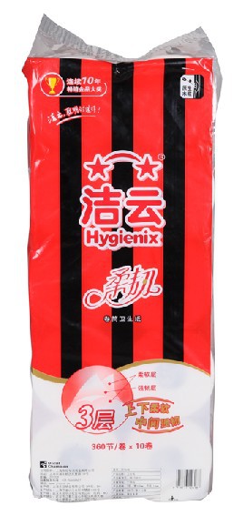 潔云三層平紋柔韌卷紙360節(10卷裝),紙質柔韌,不易破損,使用放心;100%原生木漿,天然純白,吸水性好