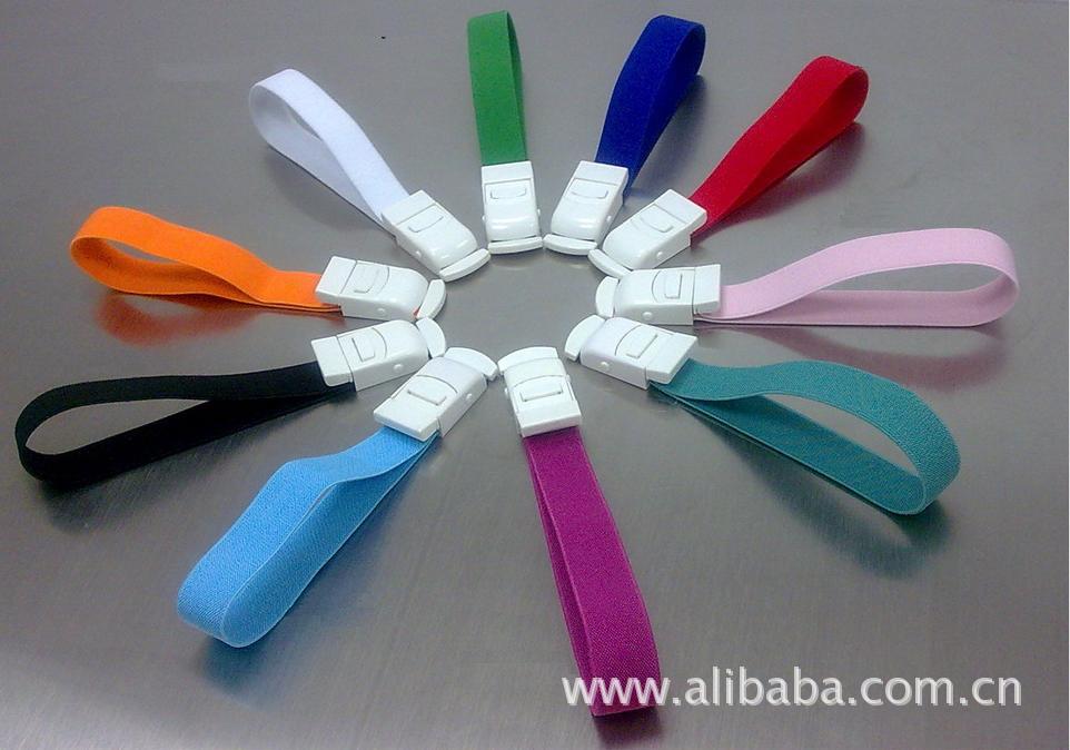 本公司生產的止血帶主要由彈性帶(扁形彈性松緊帶),ABS塑料件(扣盒,插件,手柄)組成。分為:成人型和兒童型兩大類,采用扁型的棉線維彈性帶,較傳統使用的橡皮管,使單位壓力下壓強大大減小,達到了適度壓迫,減小了病人的不適感和痛感。用于人體靜脈血樣采集過程或靜脈輸液,輸血,采血進行靜脈穿刺時使用。本產品操作簡單,使用方便