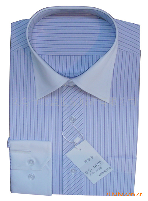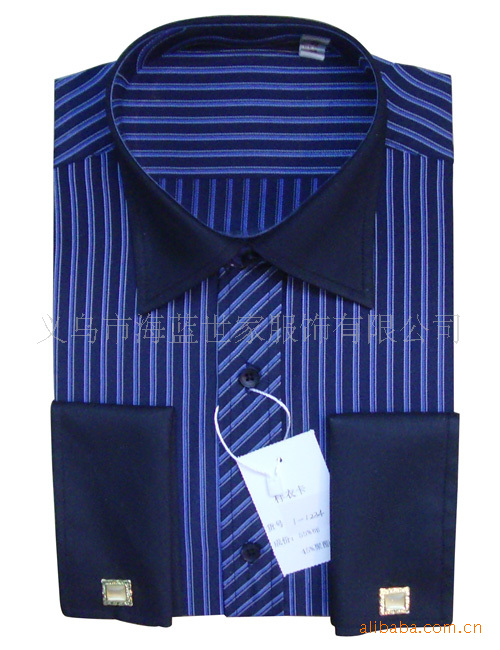 新款英倫時尚立體裁剪100支雙股面料撞色領條紋襯衫服裝廠家直銷