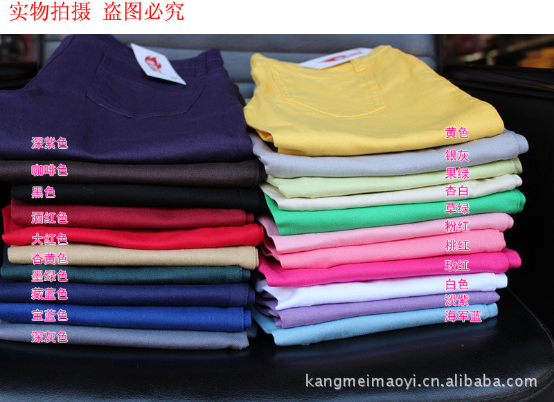 彩色褲子無非就是賣:顏色 版型 手工 面料??!親們可以從我們家拿一些和別家拿一些回去對比一下手工,面料的粗糙度和做一下洗水試驗