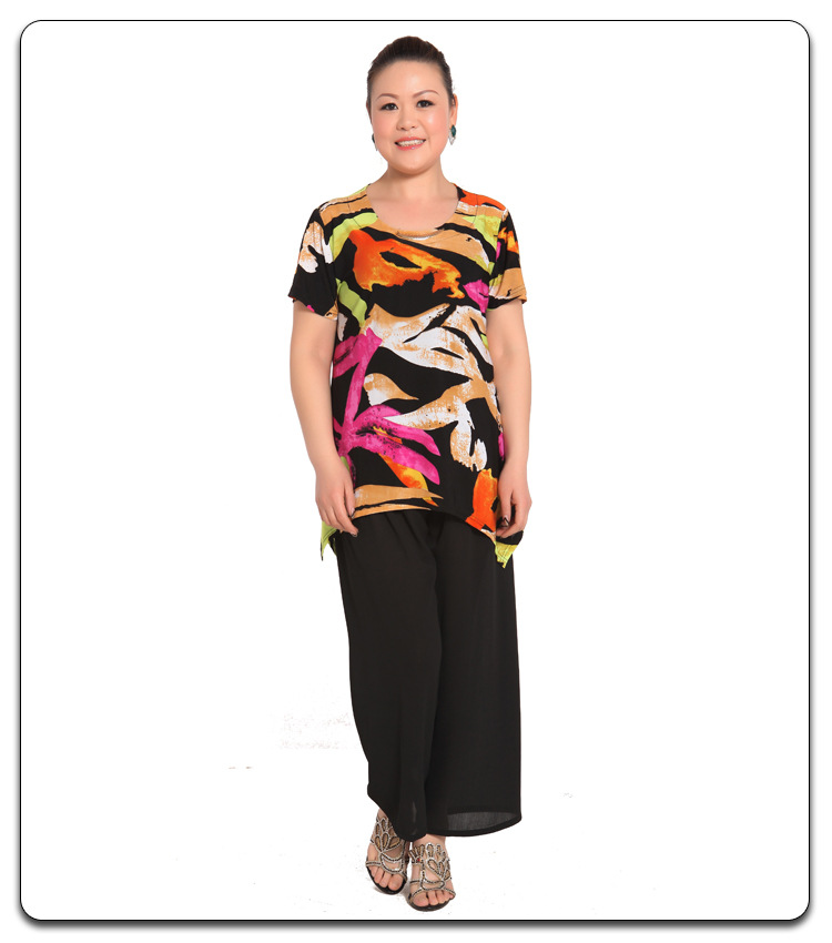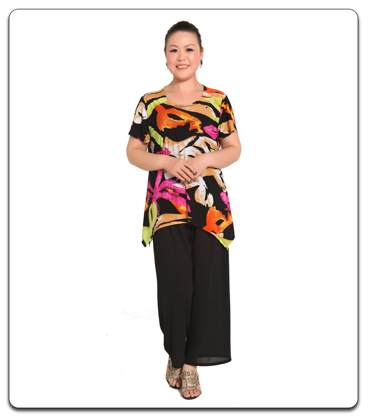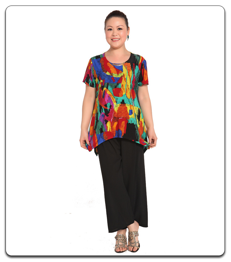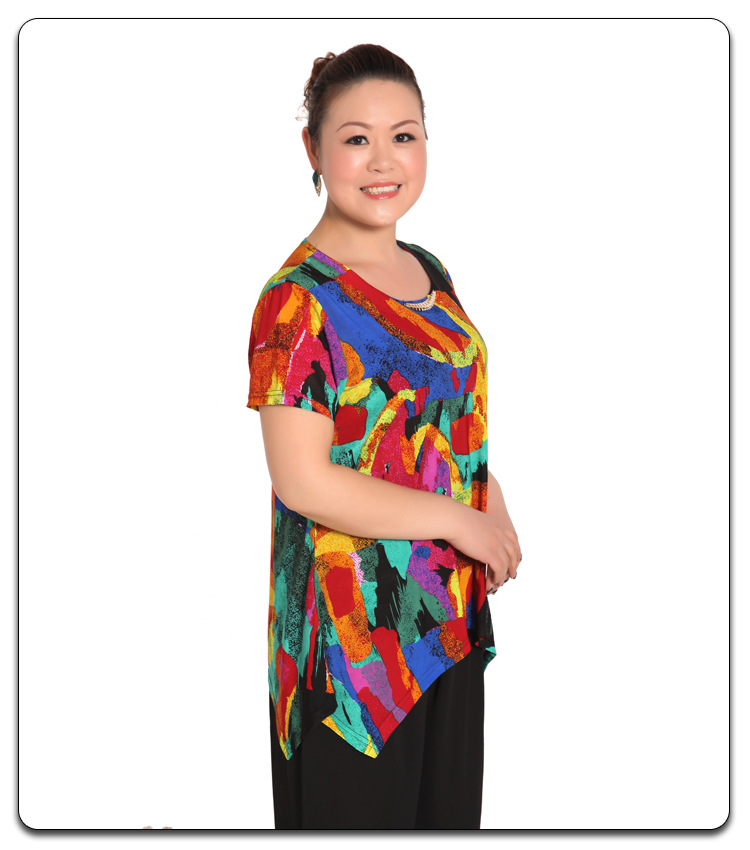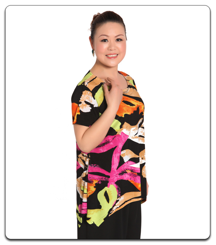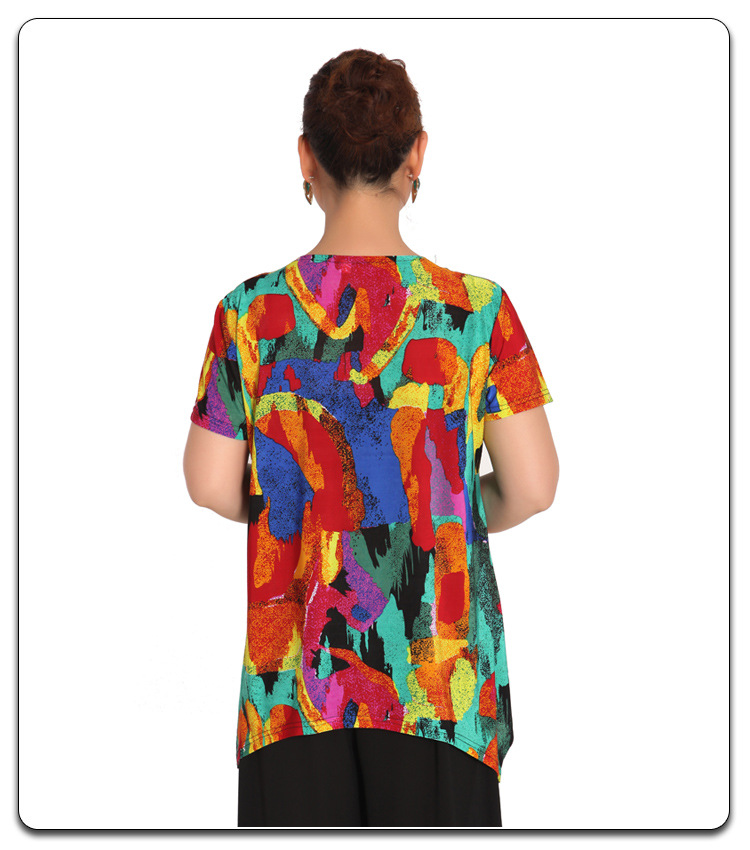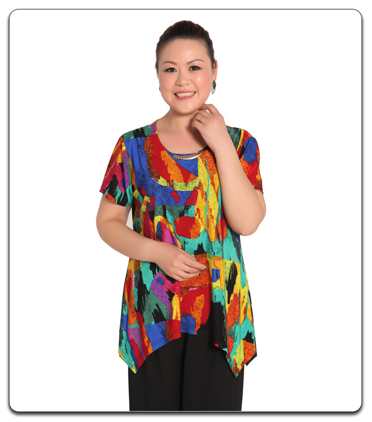 【530掃貨節】中老年女裝夏裝t恤中年女士休閑大碼媽媽裝圓領花色