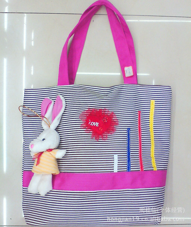 蕾絲愛心卡通小白兔單肩帆布學生休閑包