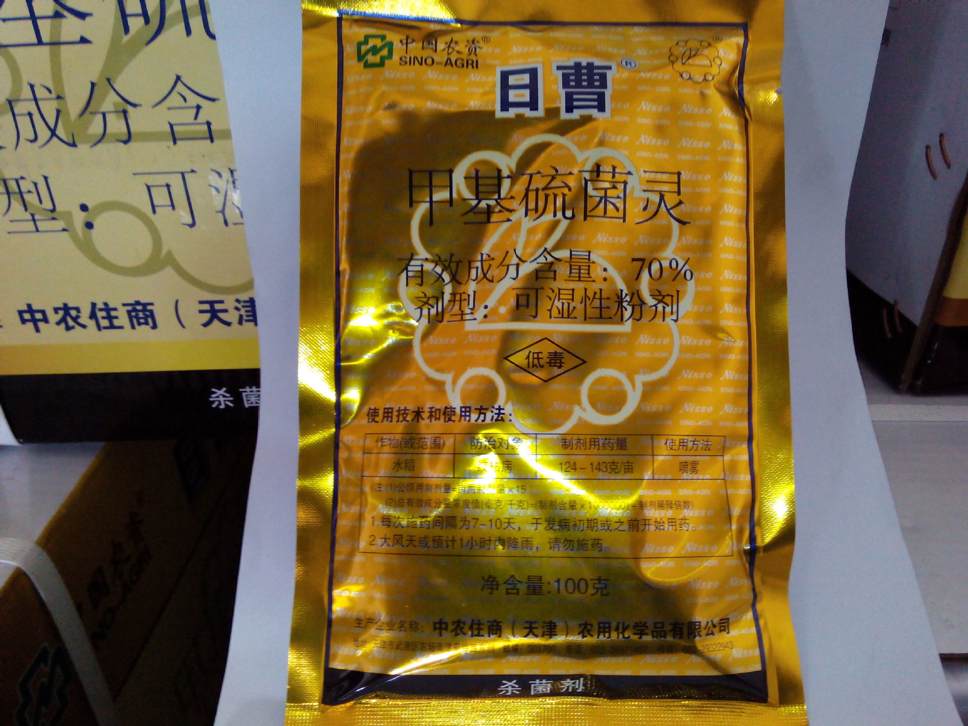有效成分156克)加水156升,浸麥種100千克,浸種時間為36~48小時。 三麥赤霉病:始花期噴藥1次,5~7天后噴第二次藥,每次每畝用70%甲基托布津53.6~71克或50%甲基托布津75~100毫升(有效成分37.5~50克)噴霧。