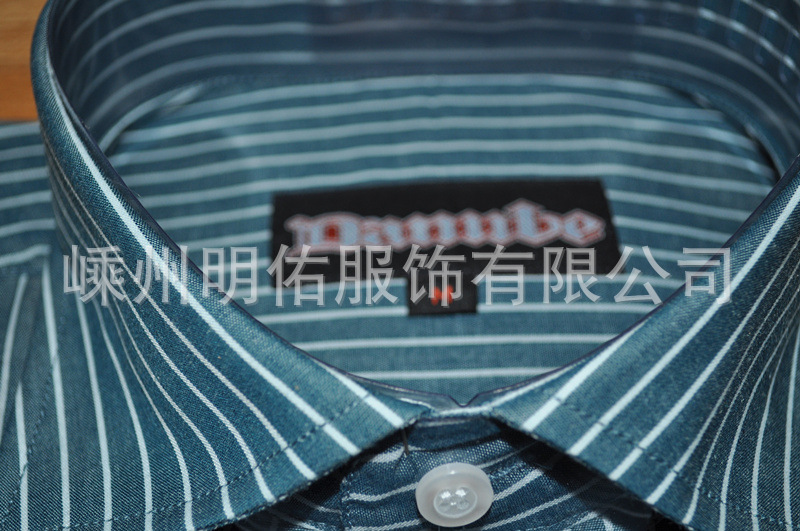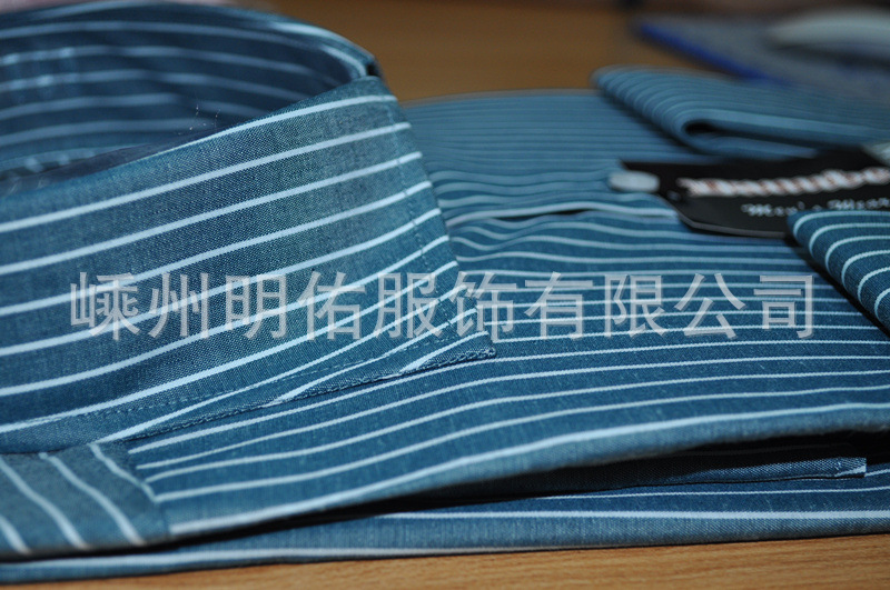 外貿出口!加工生產 品牌男裝 條紋 休閑長袖立領 全棉男式襯衫