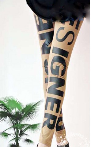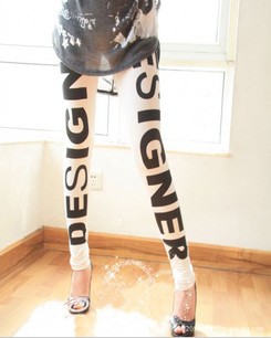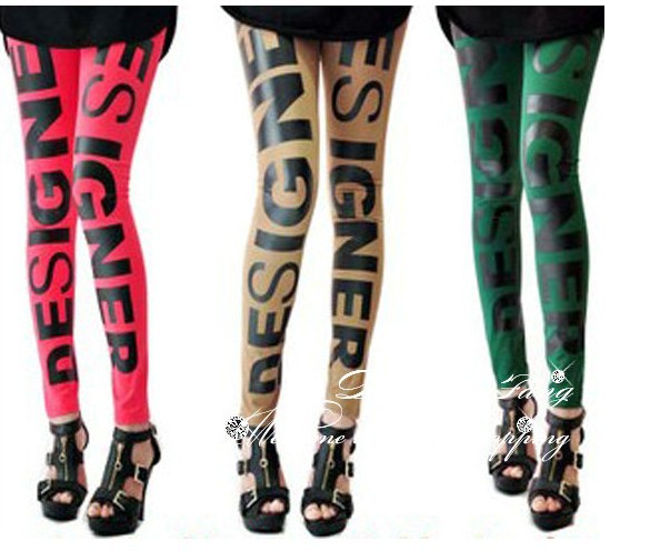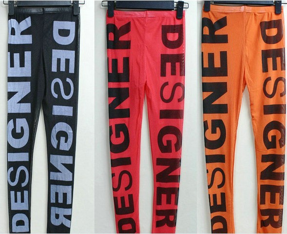 D44糖果色涂鴉字母修身熒光絲九分褲 顯瘦修身打底褲小腳褲y150