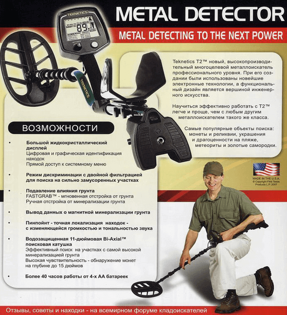 高性能:多用途,高性能的,電腦化的金屬探測器。它具有很高的靈敏度和地面平衡控制能力,尤其是在黃金探測上。在困難的條件下的遺跡探測,有很好的辨別力,在硬幣探測時,可視的目標ID作為強有力的參考。T2在13KHZ頻率下工作,在黃金和珠寶和硬幣上,有很好的工作性能。T2附帶11英寸的探測盤,以達到最da的探測深度。