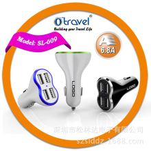 在車用點煙器上插入USB車充頭,將車用12-24V電壓轉換為DC 5V 6.8A,接上USB充電線就可以為各種GPS、手機、MP3、iPod、iPhone供電、充電。