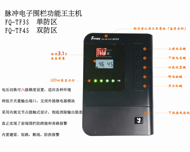 防旁路報警:電子圍欄主機能有效探測入侵者的導線旁路(等電位跨接)行為,并即刻發出報警,彌補傳統電子圍欄的致命漏洞。