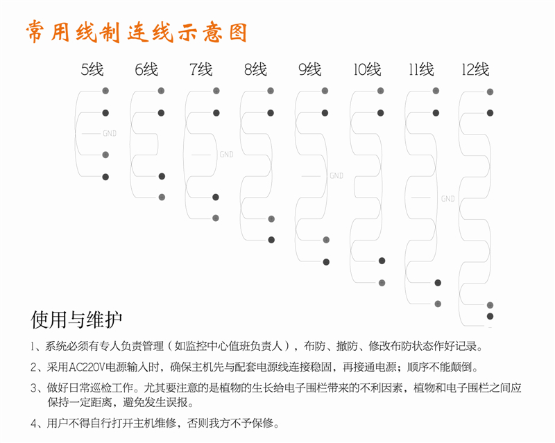 單線觸網報警:能識別入侵者觸碰電子圍欄前端單線,并發出報警。觸網報警全面革新了電子圍欄報警方式,并可區分人體與小動物的觸碰。