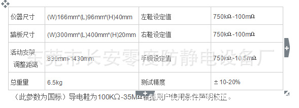 雙腳人體綜合測試儀是為測量人體綜合電阻(包括人體、手腕帶和鞋等的電阻)而設計的裝置。本儀器能對人體綜合電阻大于109Ω和小于105Ω時,進行檢測與報警,雙腳人體綜合測試儀配制了750KΩ-10MΩ電路(用于測試手腕帶)和750KΩ-100MΩ電路(用于測試鞋),此儀器是測試手腕帶和鞋套的理想選擇。