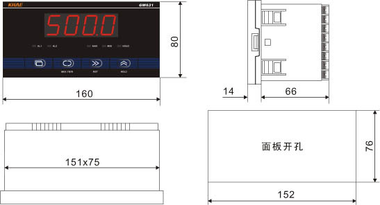 面板開孔尺寸:152x76mm