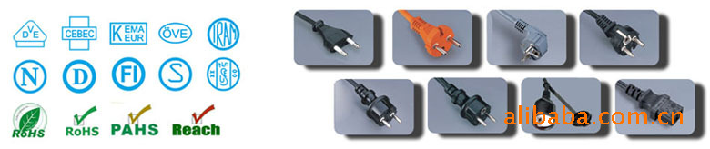 主要電源線規格有: H03VVH2-F/H03V2V2H2-F、H05VVH2-F/H05V2V2H2-F、H05VV-F/H05V2V2-F、H03VV-F/H03V2V2-F、H03VVH8/H03V2V2H8-F/H05VVH8-F/H05V2V2H8-F、H05RR-F、H05RN-F、H07RN-F 、SPT-1、NISPT-1、SPT-2、NISPT-2、SPT-3、SVT、SVTO、ST/STW/STO、SJ、SJO、SJOW、SJOOW、SJT、SJTW、SJTO、SJTOW、VFF、VCTF、VCTFK、227 IEC 52(RVV)、227 IEC 53(RVV)245 IEC 57(YZW)、245 IEC 53(YZ)、245 IEC 66(YCW)、YZWB等