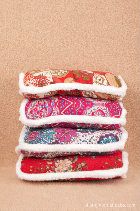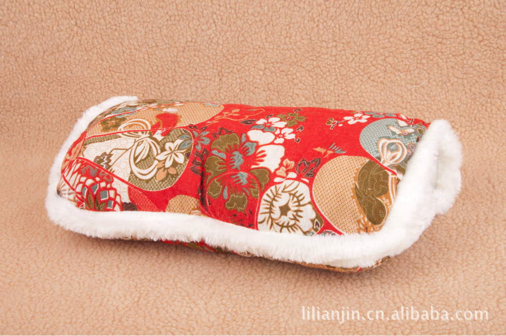 外層是棉布,中間夾云絲棉,里層是加厚羊羔絨布,十分保暖