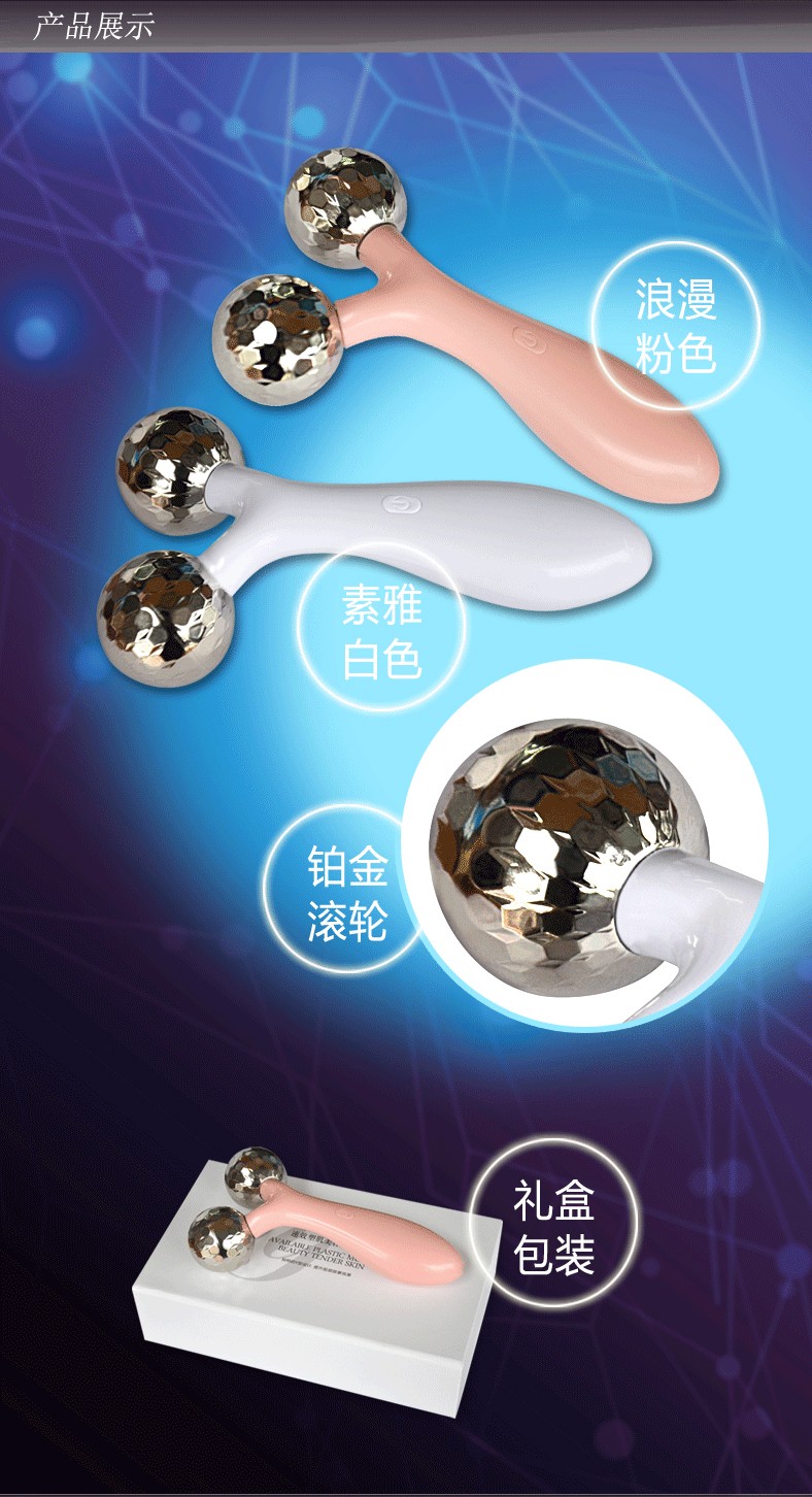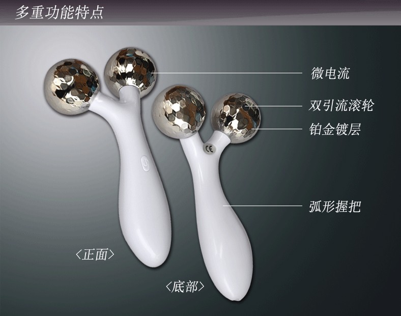 【產品特點】:鉆石切割面滾輪。專為嬌嫩肌膚設計,多角度確保滾輪與肌膚的接觸面積,效果更理想。差額電流軸承。手柄手感舒適,容易拿握。輕輕用力就可以快速滾動按[mo]。在短時間可以體驗美容美顏按[mo]***體驗。