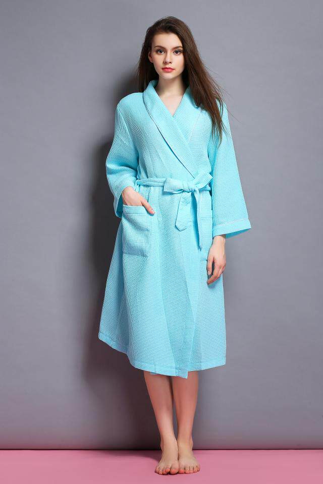 淮安浴袍廠家***棉夏季華夫格情侶浴袍 出口華夫格睡袍批發