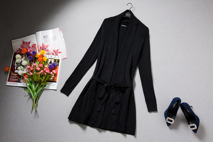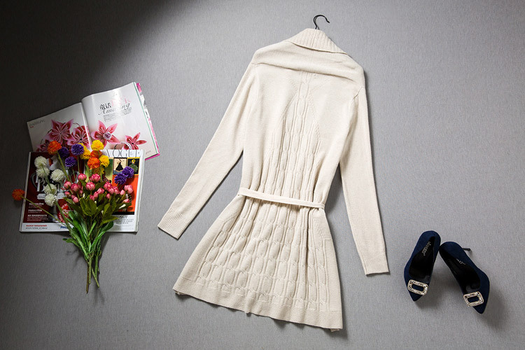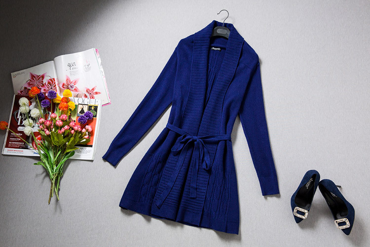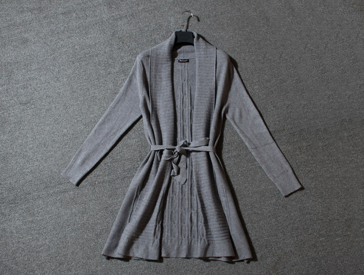 歐洲站女裝秋冬新款UZI007歐美***麻花條紋系帶針織開衫毛衣外套