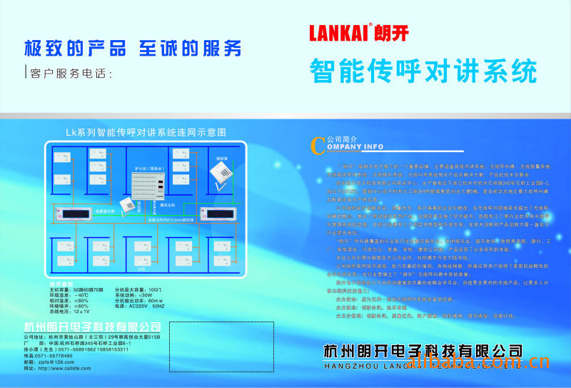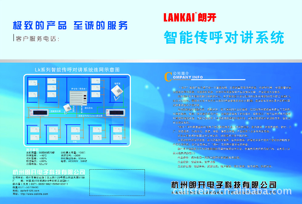 “朗開”系列醫用傳呼系統在2003年通過江蘇省電子信息產業廳科技成果鑒定,產品遠銷全國20多個省市各大醫院,并作為援外項目出口到非洲。展望未來,著眼現實,我廠將以更加務實的精神,致力于醫用傳呼系統的***化研制生產,向更高的層次邁進。 熱忱歡迎各界新老客戶光臨惠顧和洽談。