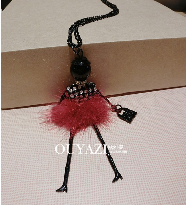 小香風山茶花水貂毛韓國百搭水晶配飾裝飾飾品項鏈毛衣鏈長款秋8.00