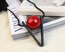 歐美夸張長款毛衣鏈三角形紅珠衣服配飾品項鏈女款掛件毛衣項鏈4.50