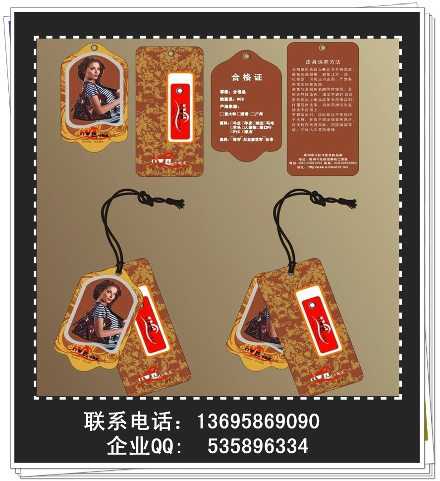 服裝吊牌又稱吊牌,掛牌,標牌,合格證。適用于食品,服裝,化妝品,五金,超市,電器等各個行業。做為公司產品的介紹及品牌認準。