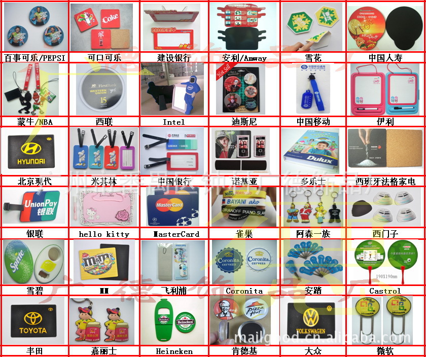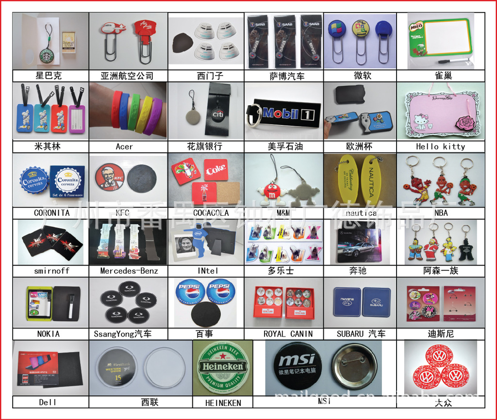 主要制造產品:PVC鑰匙扣、鼠標墊、磁性寫字板、冰箱貼、各種杯墊等。。。