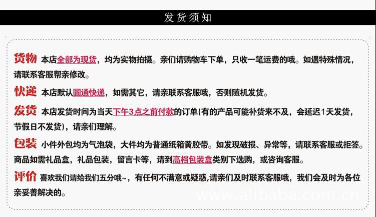 2.所有表明現貨批發的均表明有現貨,可下單后立即安排配貨及發貨流程(如遇缺貨,我們會在時間通知你換貨或者退款)。購買多件商品請聯系客服修改運費后支付。