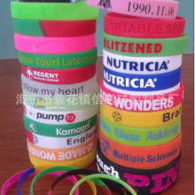2.印刷硅膠手環:也就是免開模費的硅膠手環,如特殊尺寸需開模具,印刷手環分為多色絲印,單色絲印,多色套印,是一種做貨比較快的硅膠手環。