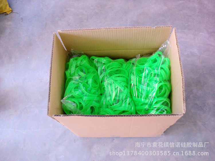 6.夜光硅膠手環:此類手環在煉膠的時候加入熒光粉一起混煉,成型的時候跟普通硅膠手環一樣,需要在晚上才看得到熒光效果,有紅光,綠光,藍光,晚上,它更加引人注目。