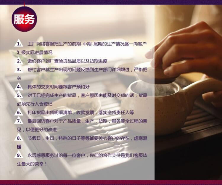 ***的服務、一貫性的態度:公司擁有***的OEM團隊,從產品結構設計、包裝設計、品牌構思都能為你提供***的建議。由于長期的合作,公司擁有一大批協力供應商,為你的品牌提供諸多便利。對待客戶公司執行一貫性的態度,從上至下無論總經理還是普通員工,都重視并維護客戶的權益。公司始終秉承“誠實立身、信譽興業”的宗旨。以質量求生存,用誠信鑄品牌,用責任維護品牌。“貼近客戶、用心聆聽”是我們的服務之本;“做生意、先做人”是我們的理念;“建立***合作關系,共創雙贏美好未來”是我們的目標。