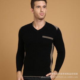 秋冬新款男士貂絨衫批發 V領套頭純貂絨毛衣 專柜***男式打底衫