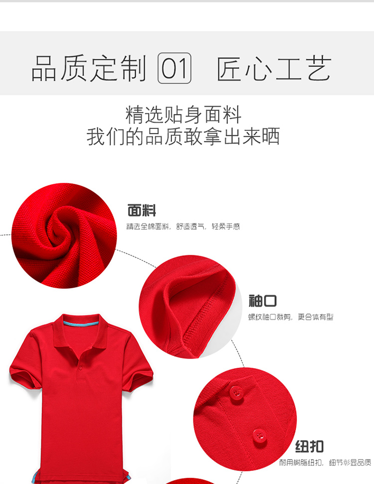 本款Polo布料的原料采用的是純棉,布料表面呈疏孔狀,如蜂巢比普通針織布更加舒適透氣干爽及更耐洗,由于織紋比較特殊,很容易辨認也稱“菠蘿布”。擁有“透氣”“舒適”“柔軟”“清爽”“環?!蔽宕筇攸c。品質定制,匠心工藝。
