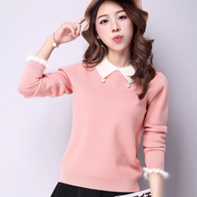 2015秋冬新款***女裝韓版拼接貂絨娃娃領保暖針織毛衣打底