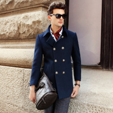 2015休閑圍風衣中年修身男式毛呢大衣中長款羊絨大衣男士毛呢外套