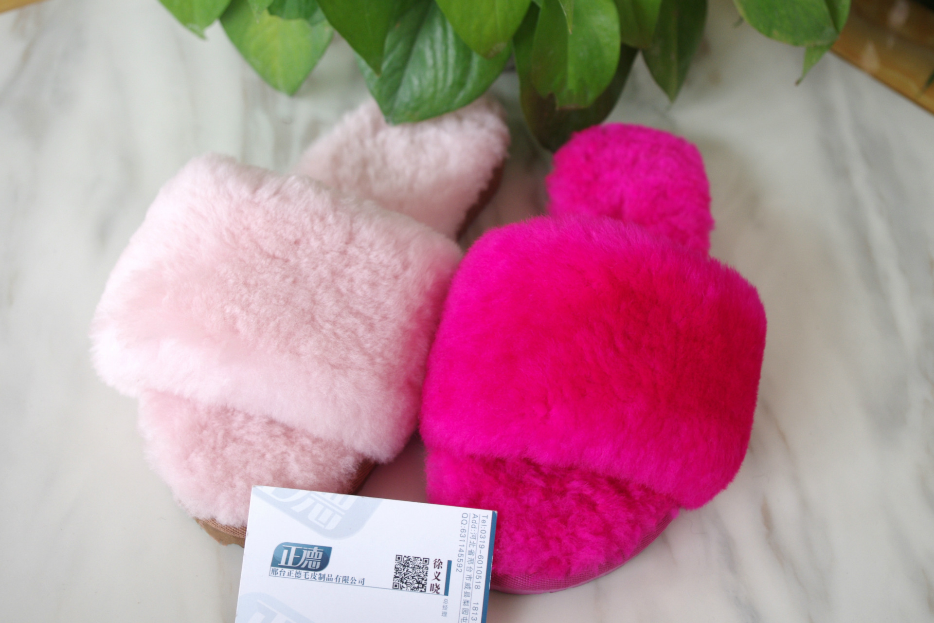 批發出口品質臥室用女式***底羊絨表面拖鞋