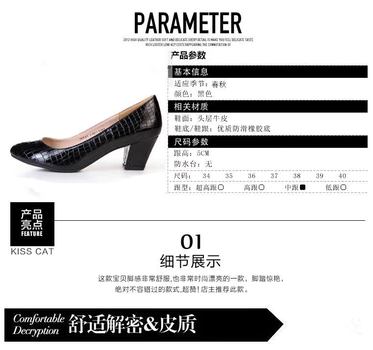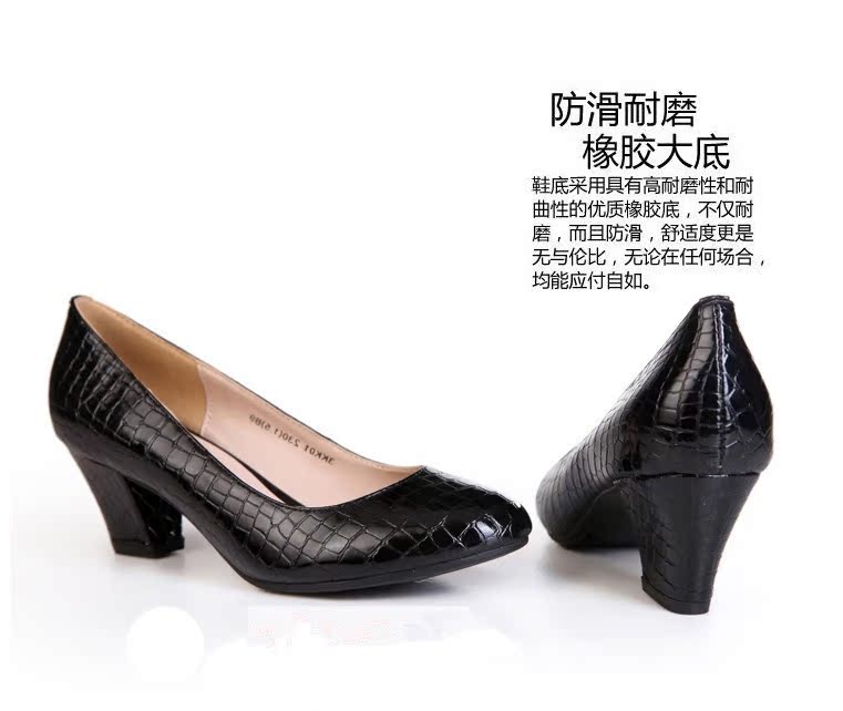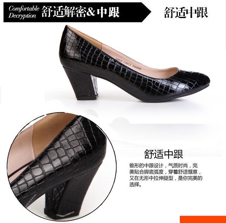款式特點:蛇紋壓花牛皮+進口輕便防滑大底+舒適中跟